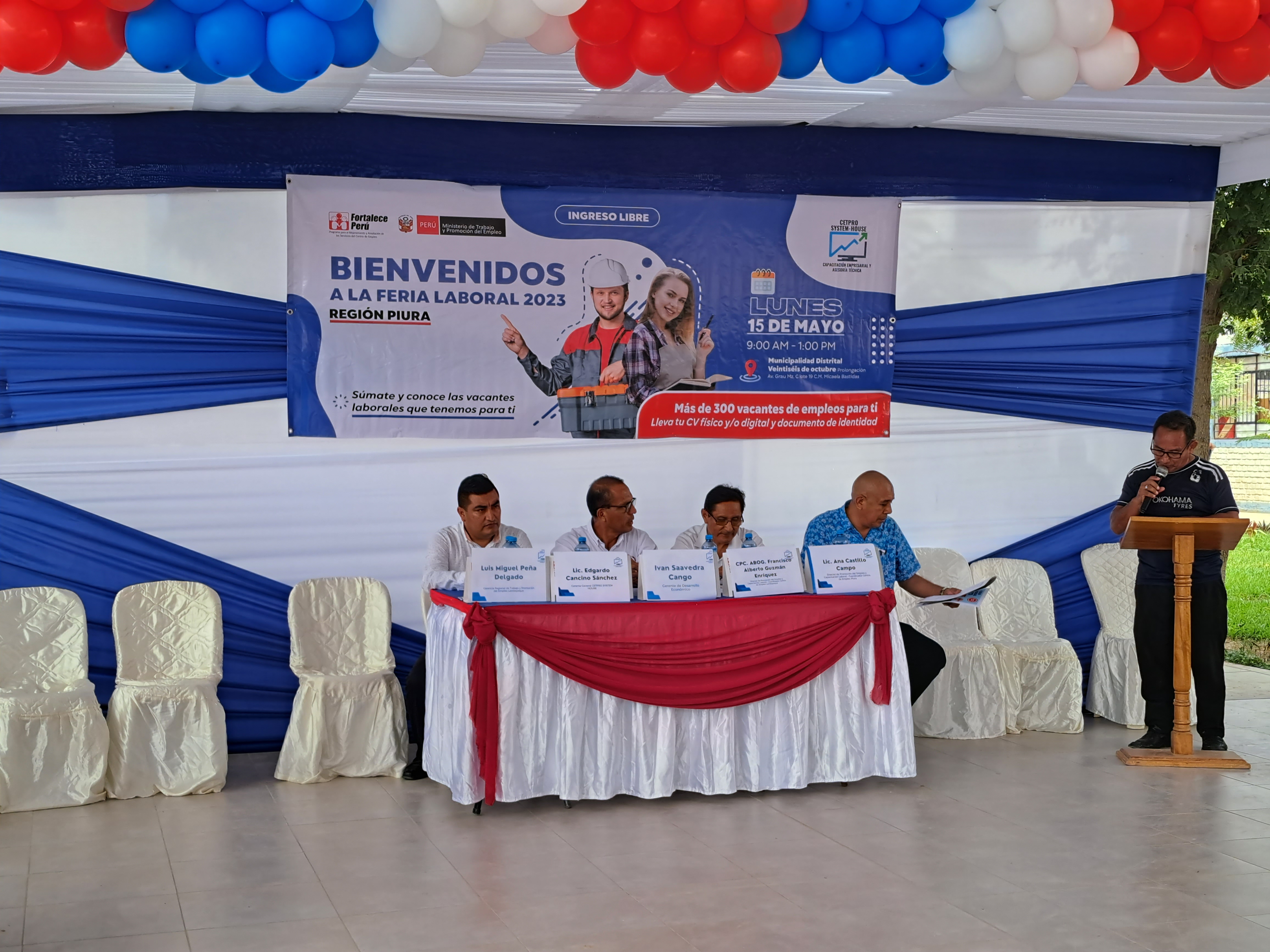 Feria realizada el 12 mayo en la Municipalidad Distrital Veintiseis de Octubre, dentro de las actividades programadas para la inserción laboral de los jóvenes capacitados en convenio con el Programa Fortalece Perú, se ha organizado una FERIA LABORAL en la región de Piura; dicha actividad tiene como finalidad conocer el potencial operativo, productivo y laboral de las empresas que contribuyen con la economía y el empleo formal dentro de la región, así mismo se busca promover un espacio de encuentro entre las empresas, los jóvenes beneficiarios y público en general, con el objetivo de ayudar en la difusión de oportunidades de empleo y a la vez completar el plan de capacitación de los jóvenes becarios que concluye con la consecución de una oportunidad de trabajo.